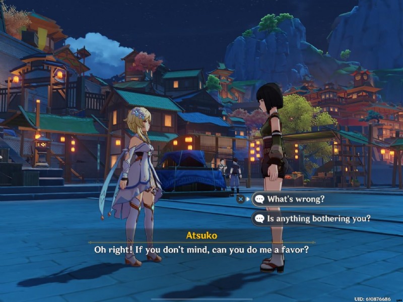 Atsuko は、Liyue で生計を立てるという彼女の決意を説明し、その目標を共有するために両親に手紙を届けるためにあなたの助けを求めています.