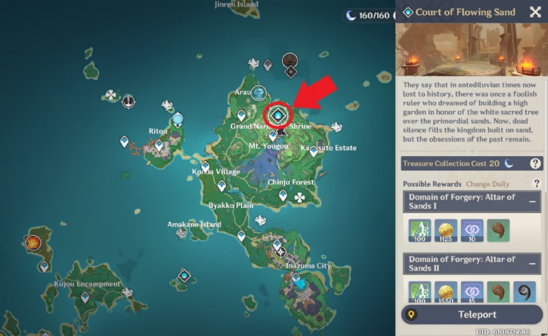 これらの 3 つのダンジョンを見つけるのに苦労している場合。冒険者のハンドブックにアクセスし、ドメイン タブに移動し、セリシア ガーデン、リアンシャン フォーミュラの隠れた宮殿、または流れる砂のコートのいずれかを見つけて、右側の小さなマーカーをクリックすると、ドメインの場所が表示されます。