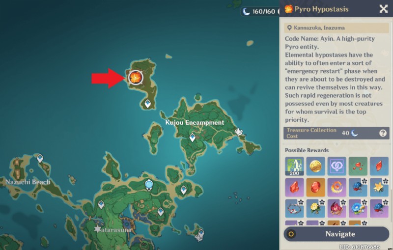 イナズマでパイロ ハイポスタシスのボスを倒すことによってのみ、くすぶりパールを入手できます。 . Smoldering Pearl やその他の報酬を受け取るには、オリジナル樹脂を 40 個消費する必要があります。