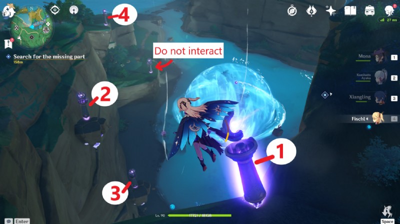 聖石塚を攻撃 (#1) デバイスを起動し、バリア ドームを持ち上げます。これで、湖の中心からロック ピラー パールを集めることができます。