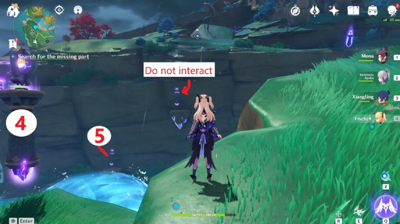 マップの北西に向かい、崖を登ります。この最初のデバイスは無視してください。さらに上って、デバイス #4 の高度を調整します (デバイス #5 を下に向けます)。