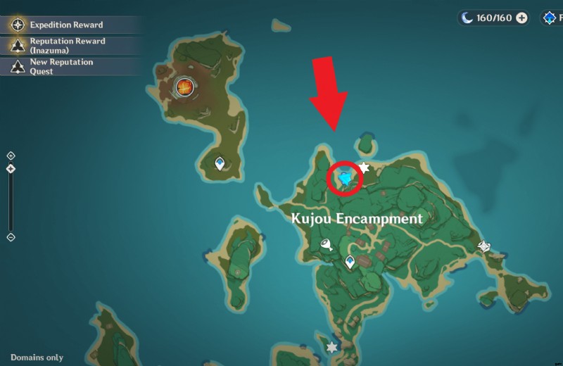 このグループは、九条野営地の北、神無塚島に位置する可能性があります (以下に示すように)。