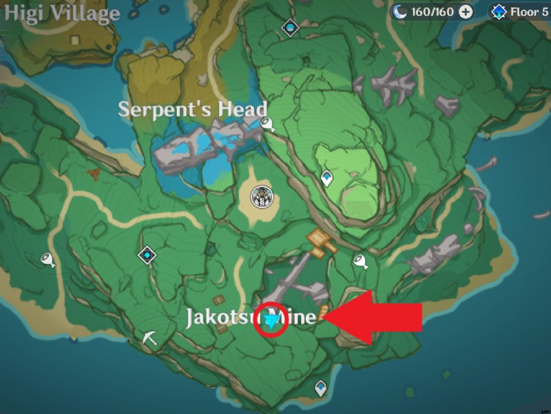 下にマークされた場所で Chouji を見つけて、3,000 マイル先を見つめるを開始します .