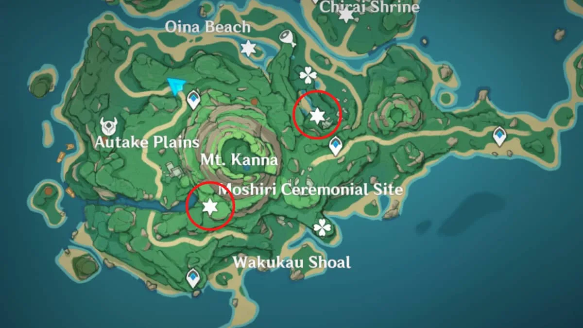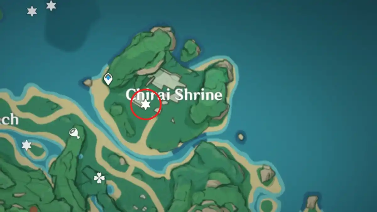 上の画像でマークされた場所に向かい、知来神社のリレーストーンパズルを含むクリアリングを見つけます.