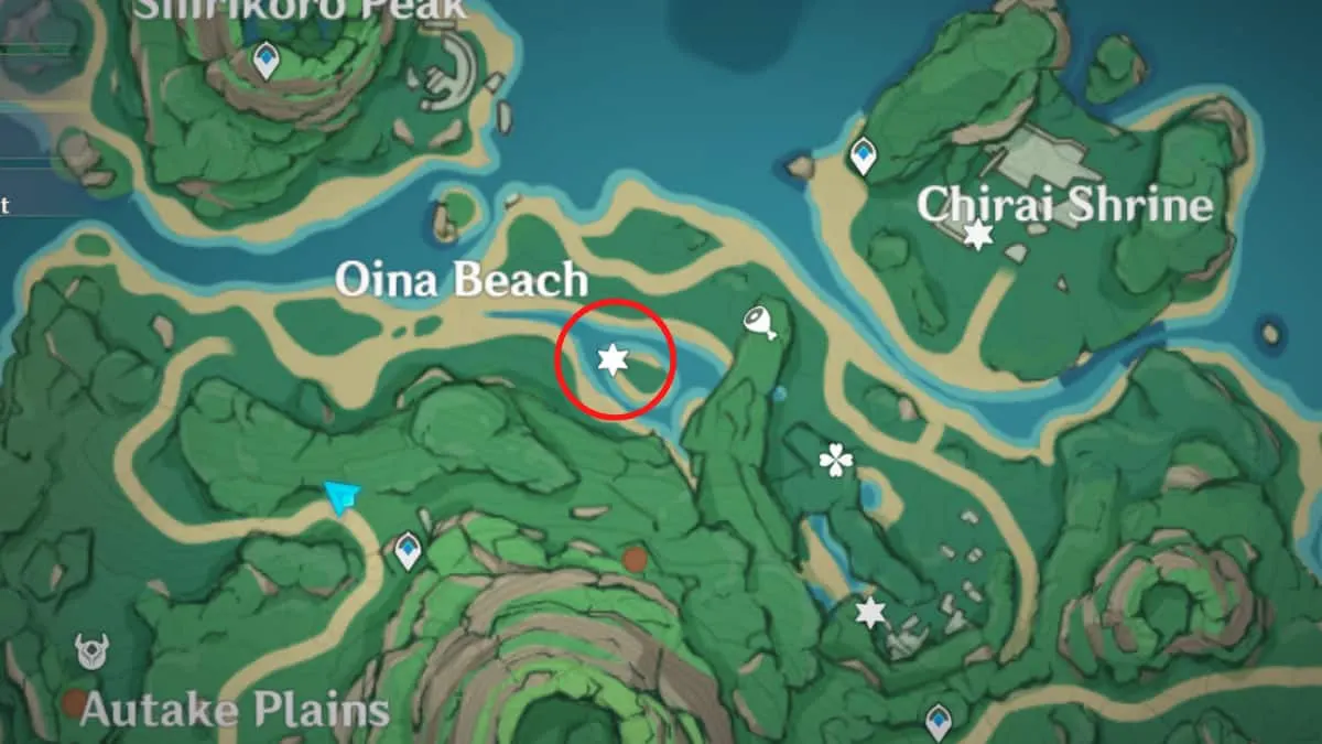 オイナビーチのマークされた場所に向かい、近くの水辺にある2つのリレーストーンが含まれているパズルを見つけます.