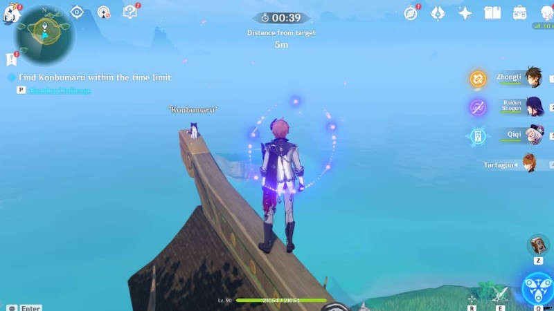 ミニマップはクエスト マーカーで強調表示され、検索の周辺を示します。画面上部にタイマーと昆布丸からの距離が表示されます。距離の値が小さくなる方向に走り続けます。これは、猫が近くにいることを示しています。
