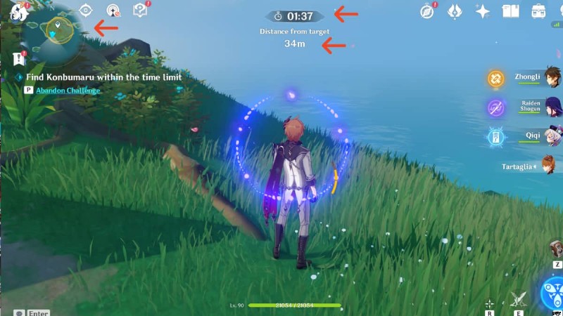 距離が特定のポイントで動かなくなっていることがわかった場合は、上または下を見てください。こんぶ丸は、木や建造物の上、崖の下などに隠れている可能性があります。