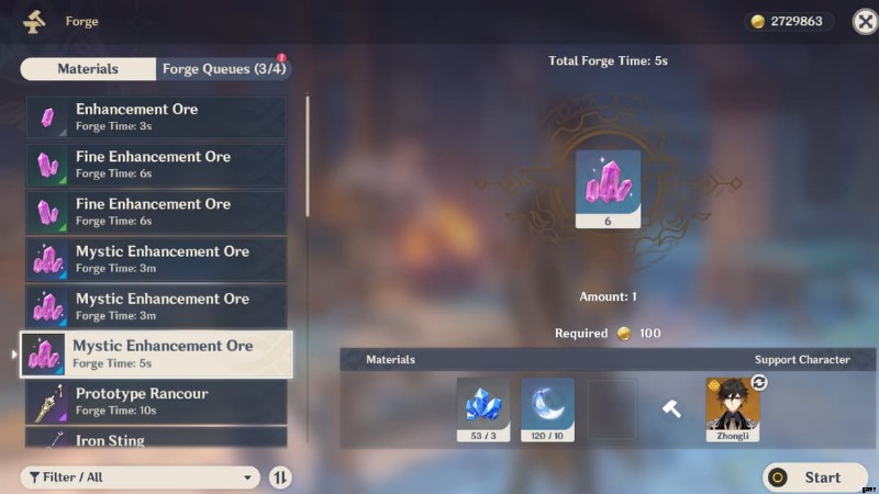 プレイヤーはセレニテア ポットの鍛冶屋または鍛造台に近づき、マジカル クリスタル チャンク x3 を含むミスティック強化鉱石 x6 を作成できます。 、x100 モラ、x10 オリジナル レジン。このレシピは樹脂のコストがかかるため、他のレシピよりも高価ですが、インスタンスごとに 50 倍のアドベンチャー EXP を得ることができます。これは、忙しくてゲームをプレイできない日に樹脂をすばやく使い果たすのに役立ちます。