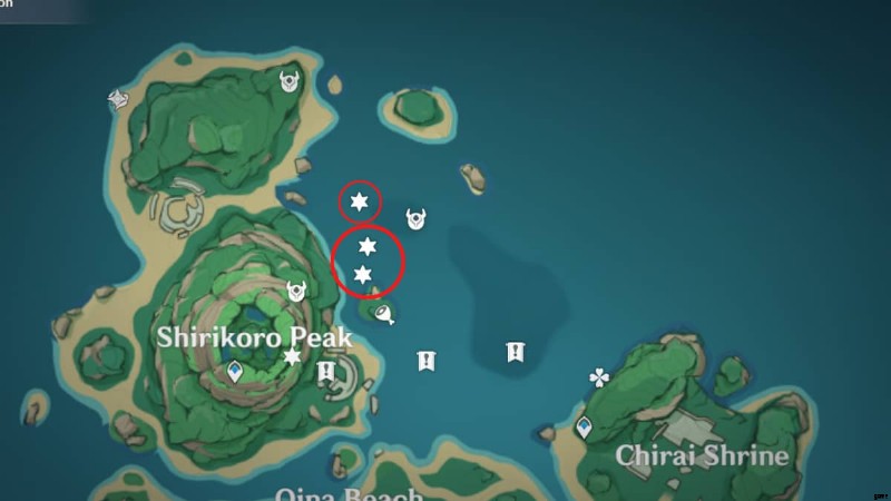丸で囲まれた場所は海の真ん中にありますが、ウェイブライダーに乗ることはできません。尻コロ峰の奥まで降りて地下通路にアクセスし、正解のエリアを探す必要があります。