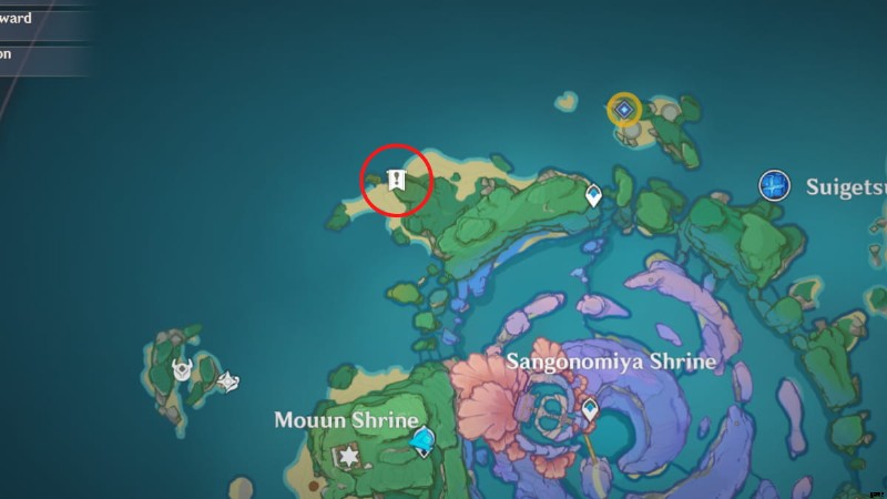 まずは綿津見島の北西にある崖の上から。その正確な位置は、下の画像に示されています。大きな戦いが待っているので、最高の戦闘チームを連れてくるようにしてください!