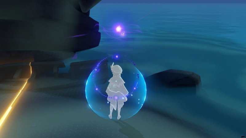 パズルを解くには、 Elemental Sight をオンにします エレクトロトレイルをたどります。 エレクトロ オーブにつながります 3 つのエリアがあります。1 つは海岸沿い、もう 1 つは水辺、もう 1 つは崖の頂上から降りたところです。オーブの近くに入るとモンスターがスポーンするので、気をつけて、チームが戦闘準備ができていることを確認してください.