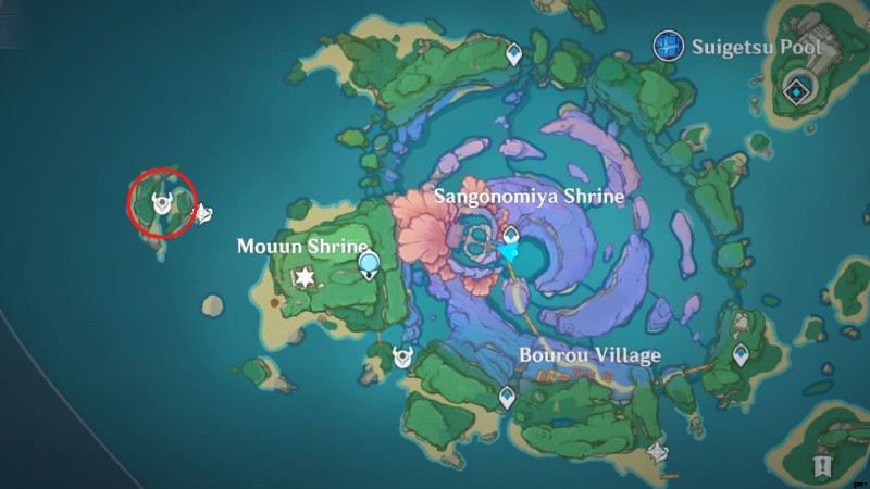 「わたつみの目」はわたつみ島の最西端の小島にあります。その正確な位置は、下の画像に示されています。