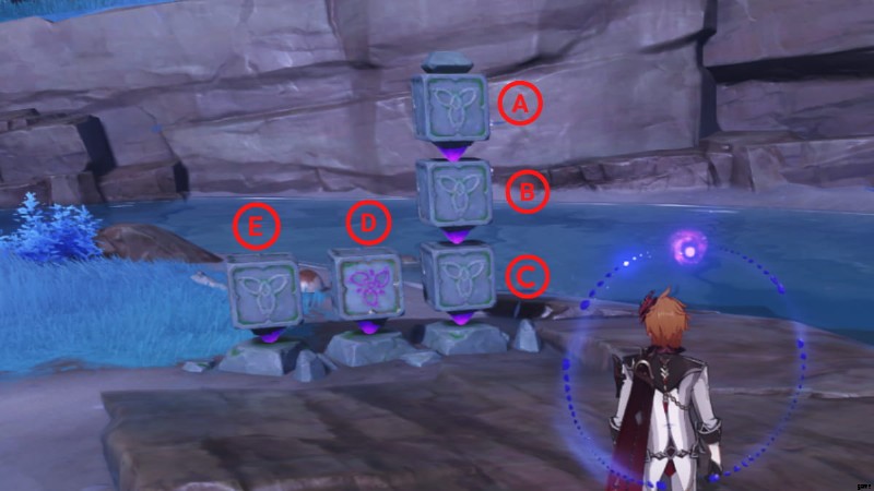 キューブ D をヒットすると、キューブ B も移動するため、最初に B を 2 回ではなく 1 回だけ移動する必要があります。上記の順序でこのパズルを完成させると、すべてのキューブが西向きになり、コモン ボックスを受け取ります。 褒美。