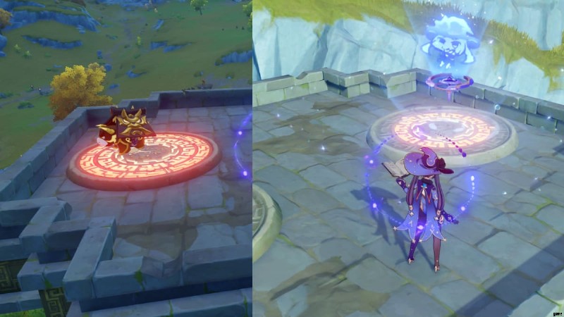 Geo Construct を使用することをお勧めします あらゆるサイズのプレッシャー プレートを有効にするのに役立ちます。これらは通常、ジオ キャラクターのエレメンタル スキルであり、パズルを完成させるために必要なすべてのプレートをアクティブにするのに十分な時間、フィールドに留まります。しかし、他のキャラクターも仕事をすることができます。