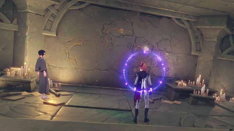 彼は、古代の白夜国文字を翻訳するのを手伝う任務を負っている学者だとあなたに言います.彼と話した後、調査スポットと対話します。 円城横の壁の前。そうすることで、ワールドマップ上でエンカノミヤがライトアップされ、この地域を簡単にナビゲートできるようになります。また、...あなたは夜を知らない...と呼ばれる日の光の実績のロックを解除します