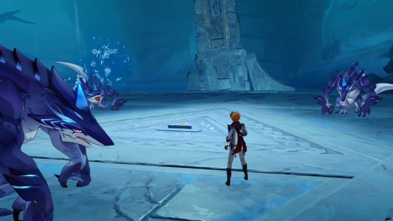 クエストをアクティブにすると、クエスト マーカーをたどって複数の目的地に行き、最終的にはアビス メイジといくつかの Hilichurls がいるクリアにつながります。それらを倒して、近くのメカニズムのロックを解除します。