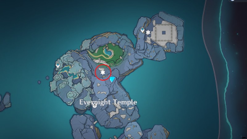 すぐに戦えるチームと一緒にエバーナイト テンプルに向かいましょう。正確な場所は下の地図で丸で囲んであります。そこには、Key Sigils に見られるのと同じシンボルを含む 5 つの石がある空き地があります。
