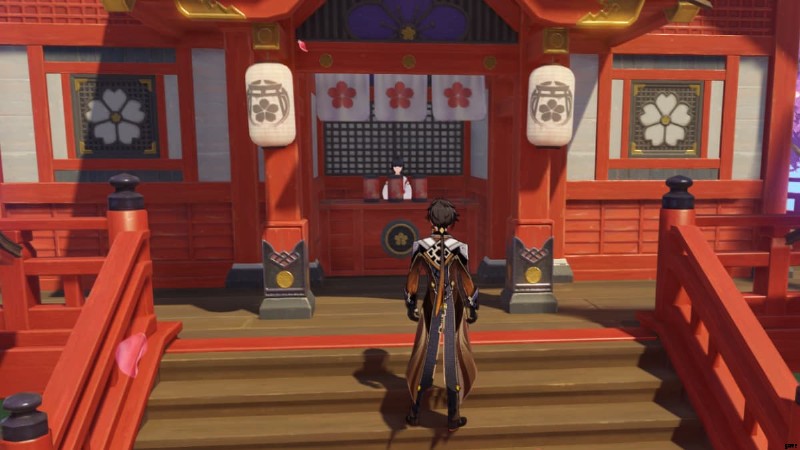 この隠された探索目標を開始するには、大鳴神神社で少なくとも 1 回おみくじを引いている必要があります。 .まだの場合は、聖なる桜の右側にある神社に行き、ゲンドウ リンゴと話してください。 おみくじを引く。おみくじは 1 日 1 回しか引けないので注意してください。