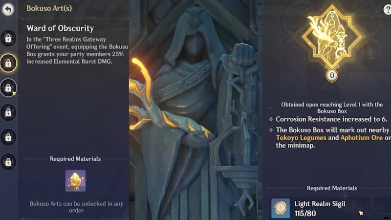 In addition to new abilities, a variety of buffs called Bokuso Arts can be unlocked for the Bokuso Box. To learn these Arts, however, you'll need to collect Light Realm Cores from the Luxurious Chests found during the event. These handy buffs will provide a huge advantage to your characters during this event, so spend some time hunting down Light Realm Cores to put the odds in your favor!