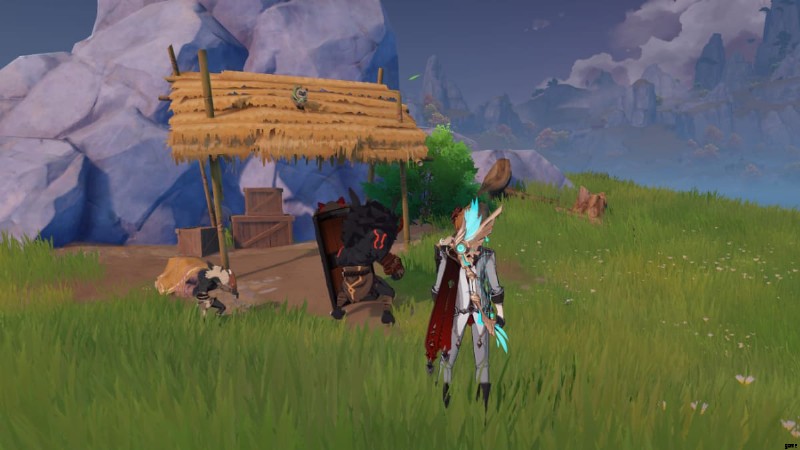 その後、ミニマップの強調表示されたエリアに向かい、小屋の屋根に貼り付けられたキチボウシを見つけます. 排除 周囲のヒリチュルがバケダヌキを救う。それが完了すると、近くの釣り場に向かうように求められます。ここで 3 匹の魚を捕まえる必要があります。 いかなる種類の。