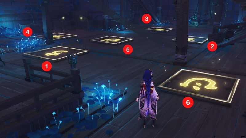 Amazonで原神インパクトを見る最初に #1 とマークされていないタイルを誤って踏んでしまった場合でも、このパズルは単純なロジックに従っているので心配する必要はありません。 各数字ペアは同じ記号を共有します 、したがって、#1 と #2 は同じであり、#3 と #4 は同じです。したがって、最初に #5 を踏んだ場合、次のステップは #6 で、そこから別のタイル ペアに取り掛かる必要があります。