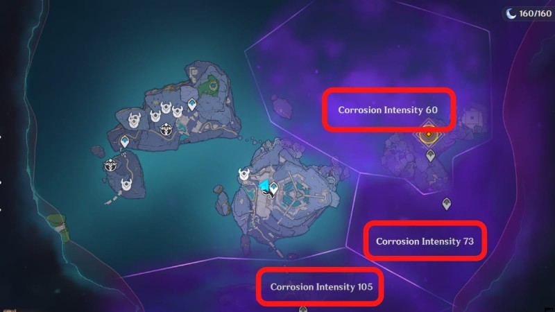 Rifthounds の Corrosion デバフと間違わないように、Three Realms Gateway の Corrosion 効果は、特定のエリアを覆う闇の量を決定するメーターに似ています。これはゲームプレイに影響を与えます。腐食強度がレジスタンス レベルよりも大幅に高いエリアを簡単に探索することはできません。さらに、腐食指数が高すぎると、物理耐性と属性耐性、および全体的なダメージが大幅に低下します。