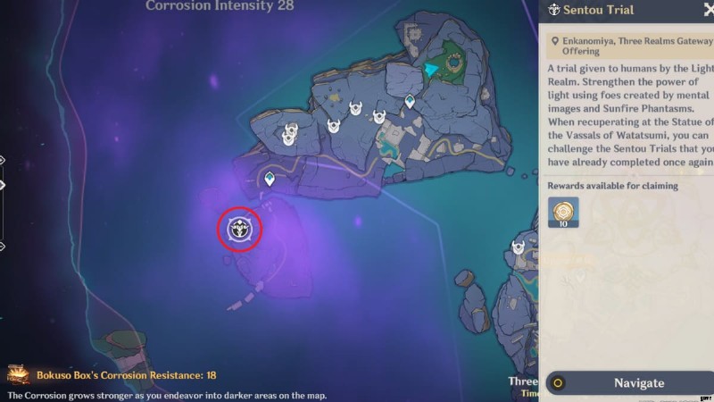 Three Realms Gateway Offering は、2 月から 40 日間開催されるイベントです。 2022 年 3 月 17 日から 2022 年 3 月 30 日まで .舞台は綿津見島の奥深くにあるエンカノミヤ。次の前提条件を満たしているすべてのプレイヤーが参加資格があります: