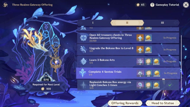 このイベントを進めるには、Genshin Impact の Three Realms Gateway Offering:Part I イベントクエストを完了する方法に関するガイドを確認してください。