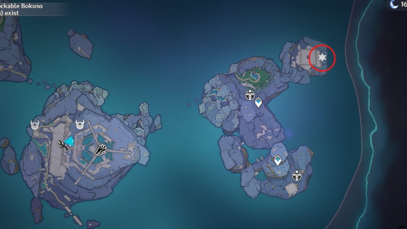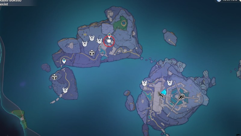 大日神輿の西にある図書館の中に、エンカノミヤのクエストラインで大きな役割を果たした 3 つの破損した石板があります。そこに着くには、上の画像で丸で囲んだエリアに向かいます。ロックされたエレクトロ モニュメント パズルに遭遇します。それを解決して、図書館への入り口のロックを解除します。