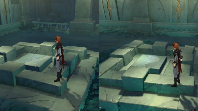 2 つのパズルを完了すると、2 つの破損したストーン スレートを収容する部屋のロックが解除されます。 1 つは Common Chest の後ろにあります 、したがって、スレートにアクセスする前に、後者を最初に略奪する必要があります. 2 つ目は、左側の水域にあります。 祭壇の。