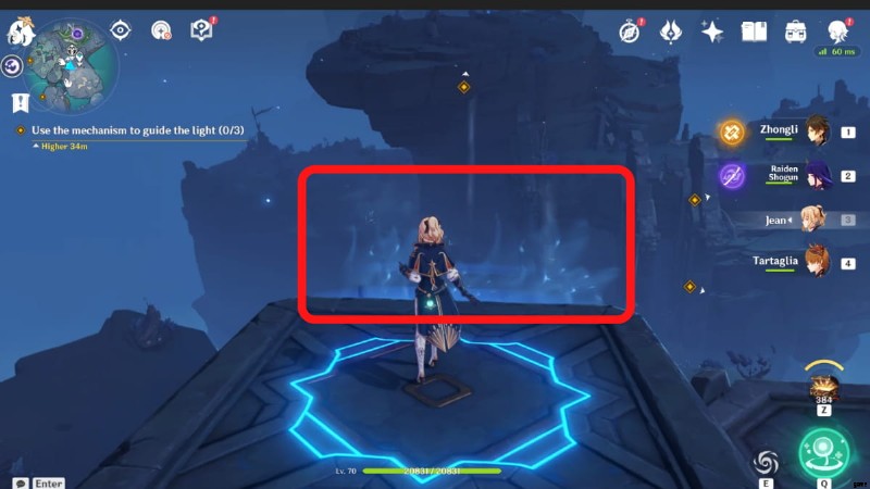 The Narrows が通常ある Three Realms Gateway Offering の西にあるクエスト マーカーに従ってください。 移動プラットフォームを待ちます 踏む前に近づき、上に誘導します。 道をたどる Illusory Platforms によって作成された場合、別のプラットフォームを待つ あなたに近づくために。新しいプラットフォームに足を踏み入れて、もう一度上に移動させてください。