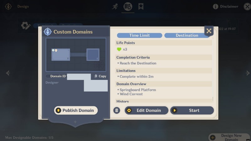 [デザイン] タブに戻り、作成したばかりのドメインをクリックして編集するか、正式に公開します。 [開始] をクリックして、自分でドメインを再生してテストすることもできます。ドメイン ID をコピーして、友人やソーシャル メディアで共有してください。
