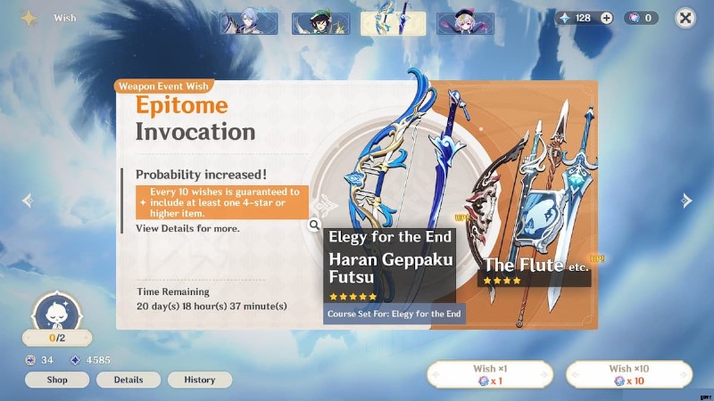 Genshin Impact には、Epitomized Path と呼ばれる 5 つ星武器の同情システムがあります。 ウィッシュ画面の左下にある 0/2 の下にある円形のアイコンをクリックすると、それを見つけることができます。このシステムにより、5 つ星の武器を 2 つ取り出した後、3 つ目は常に 代表的な道で選択したものになります。この場合は、ハラン 月白布です。
