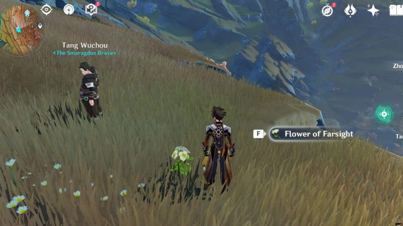 Tang Wuchou という名前の NPC に遭遇します。 . 3 つの同じように見える Qingxin が彼を取り囲んでいますが、そのうちの 1 つは実際には Farsight の花 です。 .それを手に取って崖っぷちの英雄の過去を始めましょう。