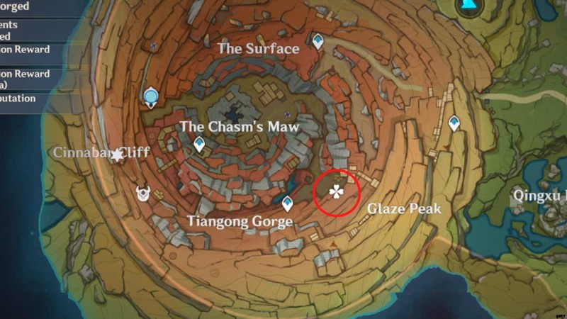 このクエストは、天公峡とグレイズ ピークの間の宝物庫のグループを倒すことでトリガーできます。それらの正確な位置は、下の画像で丸で囲まれています。