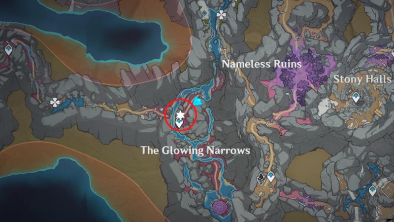 - 一番右のテレポート ウェイポイントから開始 Stony Hallsの下のThe Glowing Narrowsにあります。