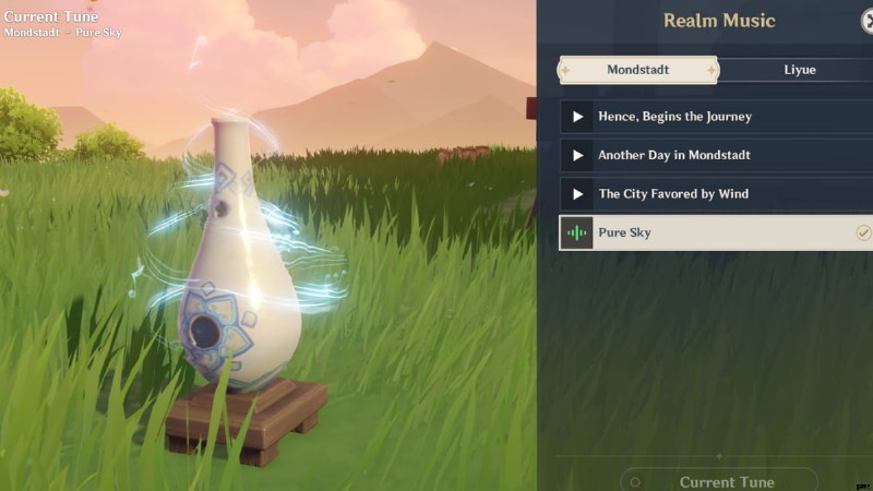 ユーフォニアムの解き放たれた家具をレルムに配置し、それを操作して、所有しているすべての曲を表示します。ラディアント スピンクリスタルはすべて自動的に登録されます ただし、ロック解除をクリックする必要があります バックグラウンドミュージックとして設定する前に、同じメニューで。ユーフォニアム アンバウンドの両方のバージョンがあれば、屋内と屋外で異なるバックグラウンド ミュージックを流すことができます。