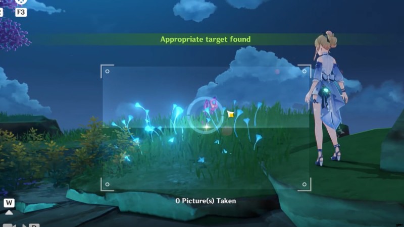 ゲームメニューのカメラでイナズマの郷土料理を狙うと、画面上部に「適切なターゲットが見つかりました」という通知が表示されます。写真を撮ってタスクを完了します。 4 つの異なるターゲットを設定する必要があります それらすべてが重要な地元の特産品。