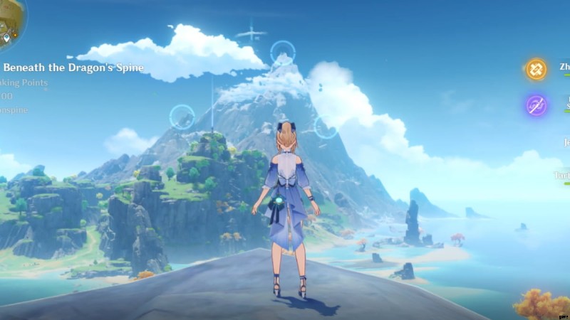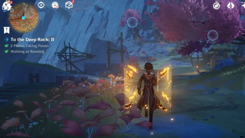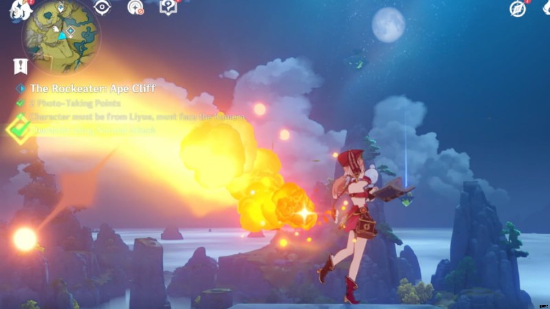 このプロンプトは、Liyue Habor の北の崖にあります。以下の手順に従って、適切なショットを撮影してください: