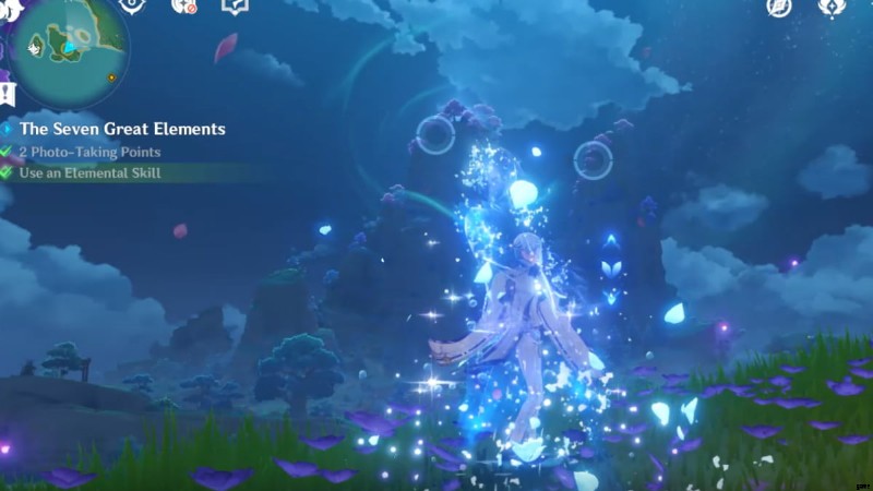 - エレメンタル スキルを使用する 、すぐに写真を撮る カメラと。スキルがまだキャストされている間にこれを行う必要があります。