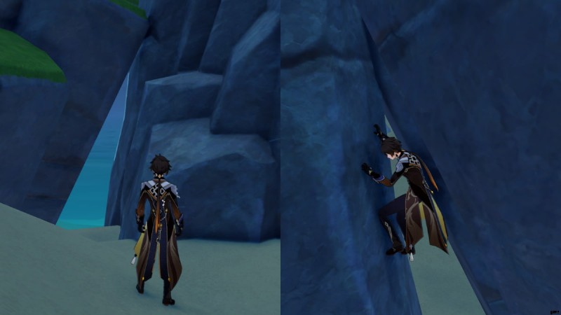 Genshin Impact のプレイヤーがグユン ストーン フォレストで、キスしているキャラクターの写真を撮影できる狭い隙間を発見しました