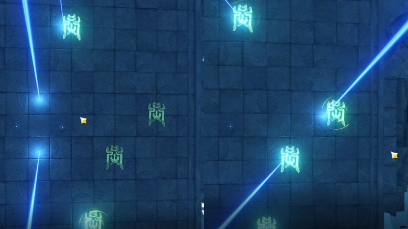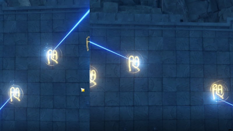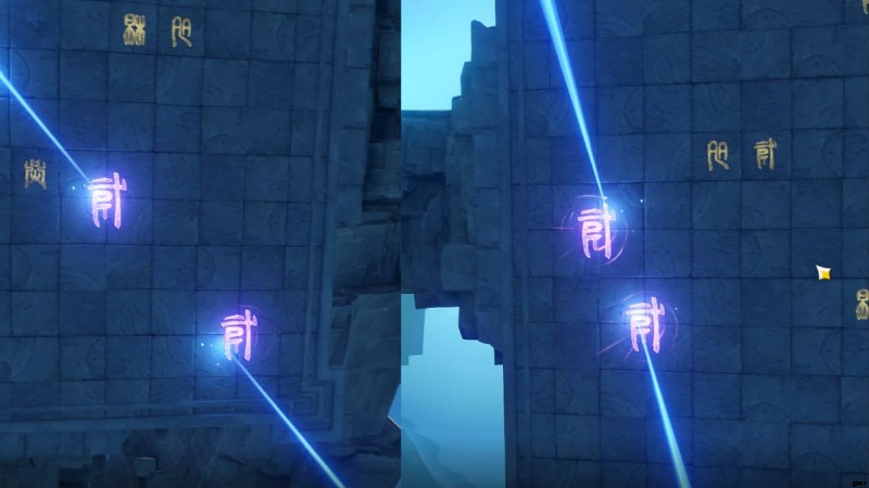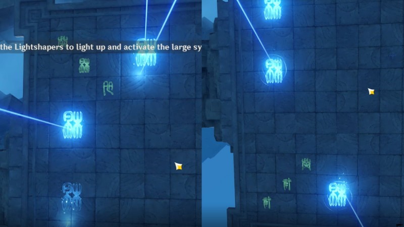パズルの最初の部分では、小さなルーンを点灯させる必要があります。 足踏みでそうする 各要素に対応する正しい記号について。各要素を踏む正しいシンボルについては、上の画像を参照してください。