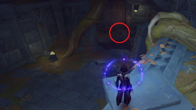 その後、部屋に入り、反対側のメカニズムを見つけます。上の画像の丸で囲んだところです。青い深みの 9 つのオーブが秘密の部屋を開くメカニズムを提供します。中には精巧な宝箱、貴重な宝箱、豪華な宝箱があります。また、Crede Tenebrae と呼ばれる世界の驚異の実績もアンロックできます .