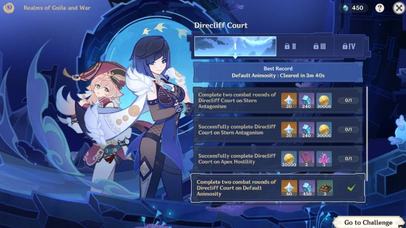 ステージ選択時、画面下部で難易度を選択できます。イベントタスクを完了するために、各ステージを何度でもプレイできます。難易度の選択が表示されない場合は、[チャレンジをリセット] をクリックしてください。 画面の左下にあるボタンをクリックして問題を解決してください。