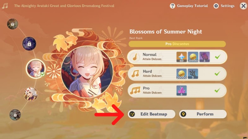 Genshin Impact The Almty Arataki Great and Glorious Drumalong Festival イベントで高度な編集を使用してカスタム ビートマップを作成する方法