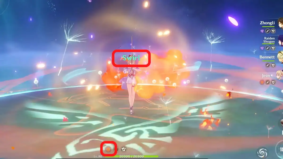 公式のリアクションではありませんが、サンファイアはコミュニティーによって作られた用語で、アネモ キャラクターが常にスワール リアクションを使用してパイロを再適用する効果を指します。この効果は、ベネットと数人のアネモのキャラクターに固有のもので、最も人気のあるのはジーンで、カズハは僅差の 2 番目です (ただし、メカニズムは少し異なります)。これは、シールドを破る最も簡単な方法の 1 つです。特に、Abyss Lector や Raiden Shogun Weekly Boss などの敵からの Electro シールドを破ります。