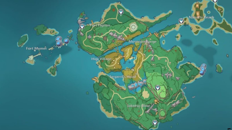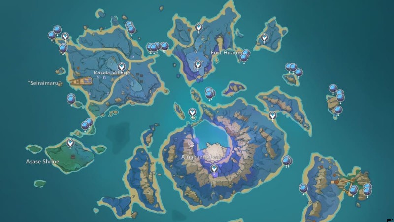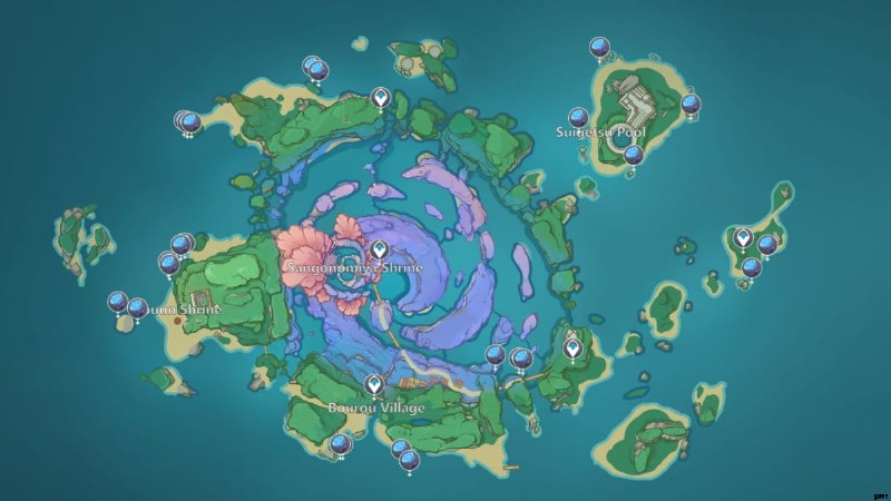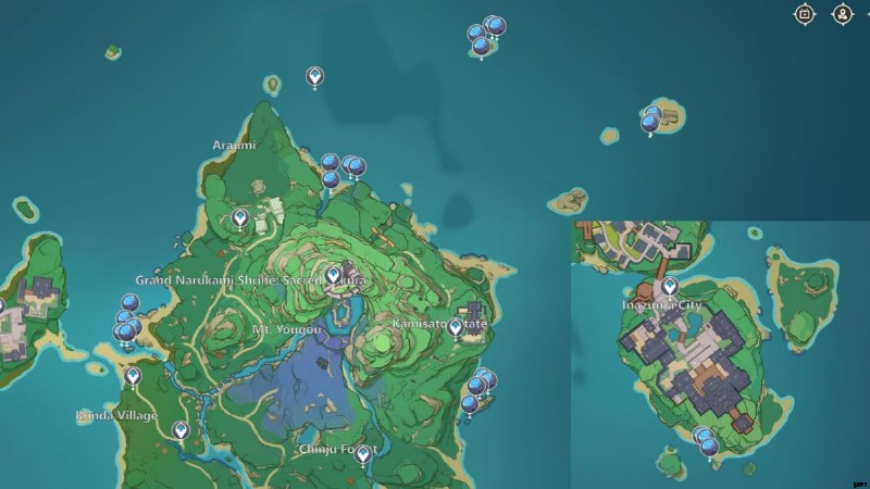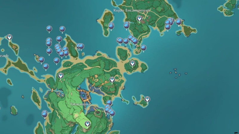 豊かな水に囲まれた国、イナズマのいたるところにシーガノデルマがいます。 . 神無塚で最も簡単に採集できます 、あまり離れていない大きなグループにクラスター化されています。ただし、一部のシー ガノデルマは少し水深に生息しているため、泳ぐか、Mona や Ayaka などのウォーター スプリンターを使用して到達する必要がある場合があります。以下は、イナズマの主要なエリアに分割された、Genshin ImpactのすべてのSea Ganodermasの場所です.
