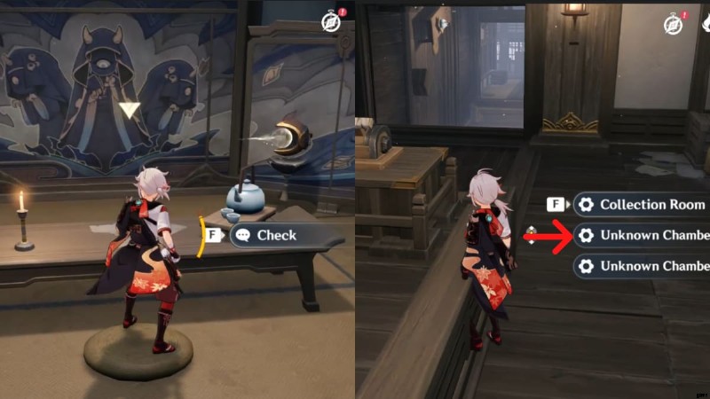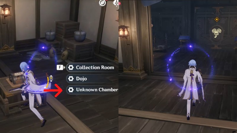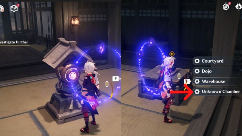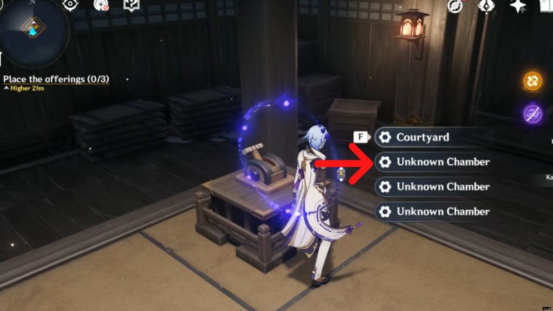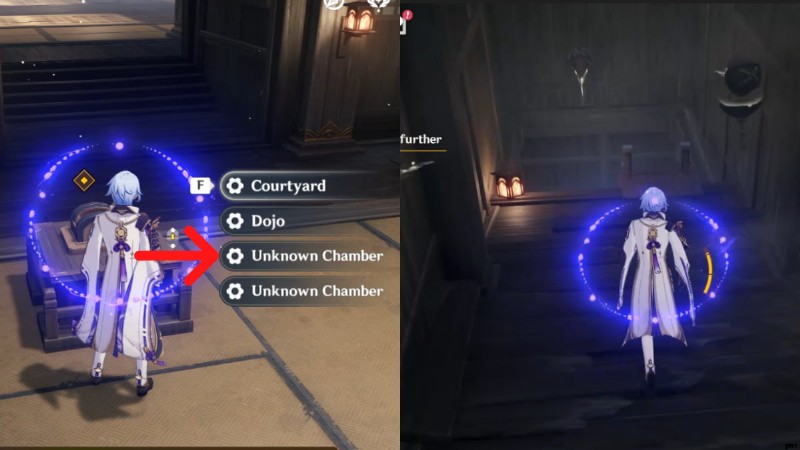 - それが完了したら、外に戻ってスイッチを操作します。2 番目のオプション (Unknown Chamber) を選択します。 . 2 番目と 3 番目のオプションは異なることに注意してください。適切なオプションを選択してください。
