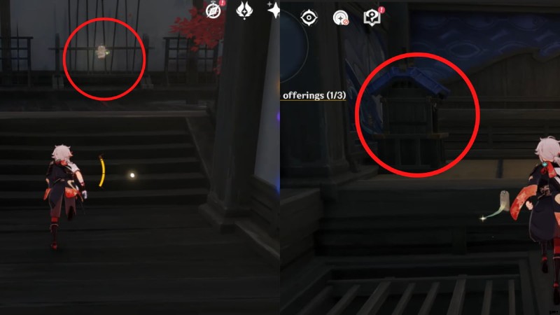 - Follow the path forward and climb another set of stairs to find the third Shrine beside another staircase. Place the Melodic Omamori in it.