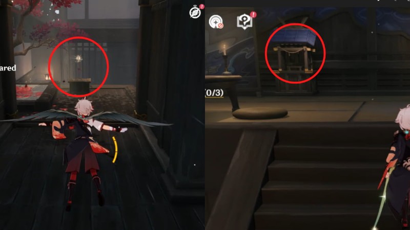 - 2 番目のメロディック オマモリを 2 番目の祠に配置して、その後ろの部屋のロックを解除します。